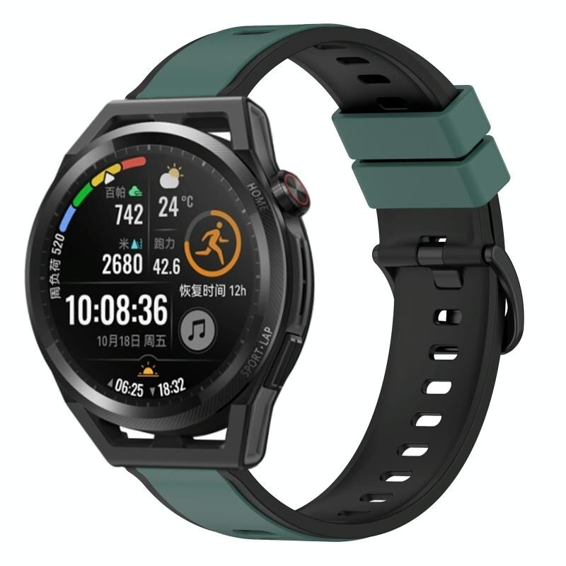 Για το Huawei Watch GT Runner 22mm Δύο-χρώμα σιλικόνης ρολόι μπάντα ρολογιών (πράσινο ελιάς + μαύρο)