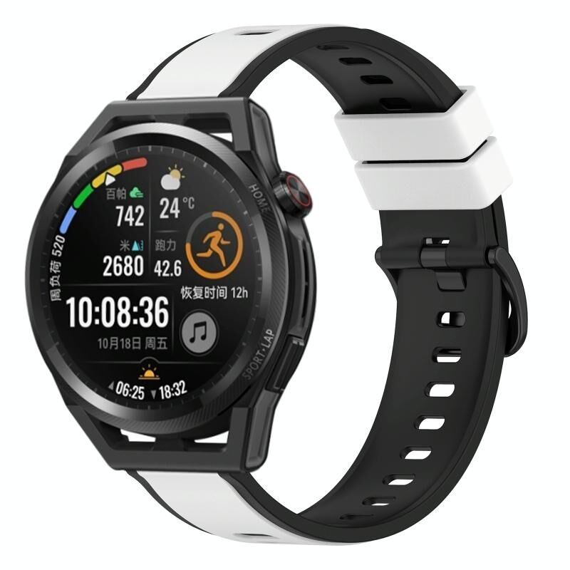 Για το Huawei Watch GT Runner 22mm Δύο-χρώμα σιλικόνης ρολόι μπάντα ρολογιών (Λευκό + Μαύρο)