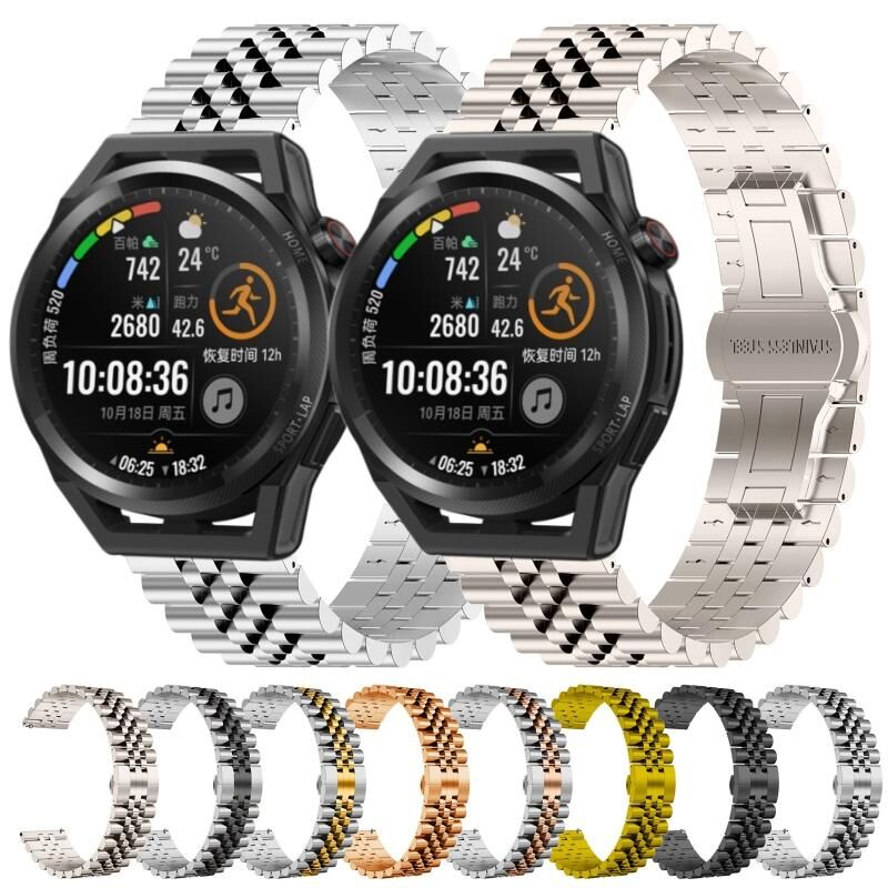 Για το Huawei Watch GT Runner Five Bull Half Round Stainless Steel Watch Band + Εργαλείο αφαίρεσης λουριού (Ασημί)
