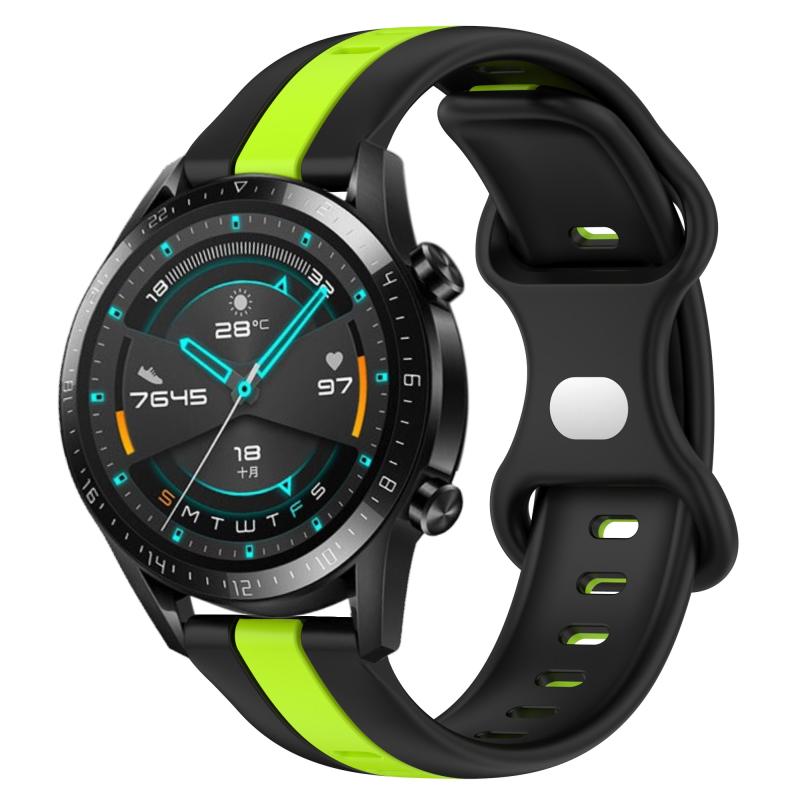 For Huawei Watch GT2 42mm 20mm Butterfly Buckle Two-Color Silicone Watch Band(Black+Green)