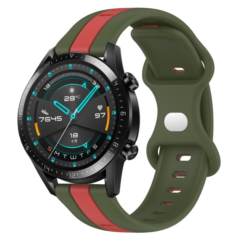 For Huawei Watch GT2 42mm 20mm Butterfly Buckle Two-Color Silicone Watch Band(Red+Army Green)