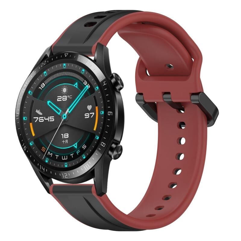 Για Huawei Watch GT2 42mm 20mm κυρτό βρόχο σιλικόνης δύο χρωμάτων (μαύρο + κόκκινο)