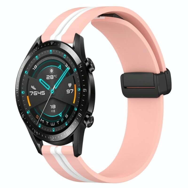 Για Huawei Watch GT2 42mm 20mm Πτυσσόμενο μαγνητικό κούμπωμα ζώνη ρολογιού σιλικόνης (ροζ + λευκό)