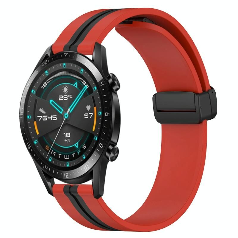 Για το Huawei Watch GT2 42mm 20mm Πτυσσόμενο μαγνητικό κούμπωμα ζώνη ρολογιού σιλικόνης (κόκκινο + μαύρο)