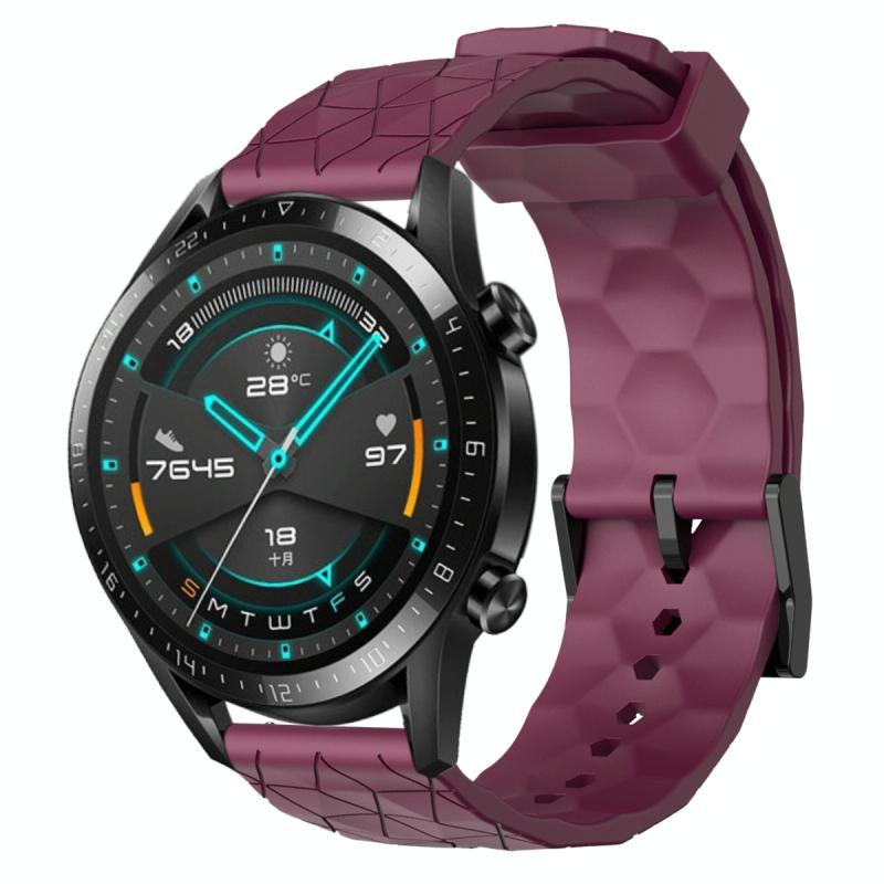 For Huawei Watch GT2 42mm 20mm Football Pattern Solid Color Silicone Watch Band(Wine Red)