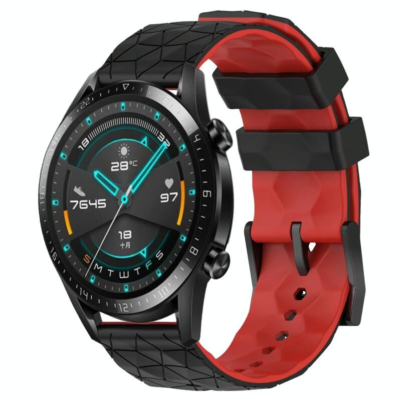 Για το Huawei Watch GT2 42mm 20mm ποδοσφαιρικό μοτίβο σιλικόνης δύο χρωμάτων (μαύρο + κόκκινο)