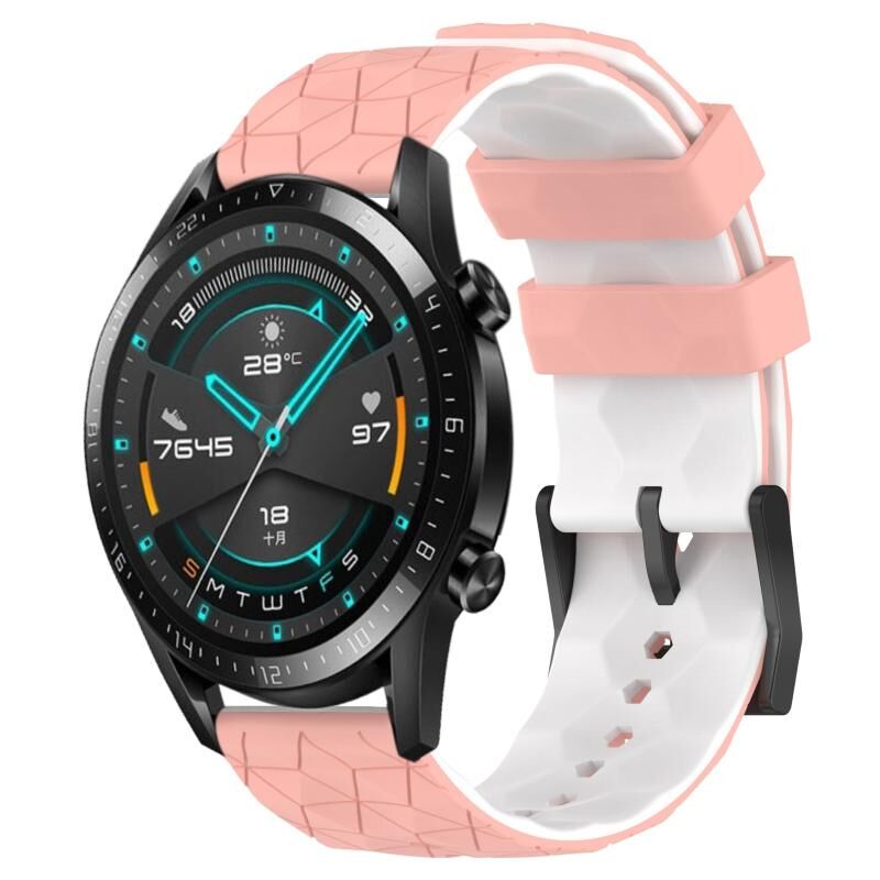 Για Huawei Watch GT2 42mm 20mm ποδοσφαιρικό μοτίβο δύο χρωμάτων σιλικόνης ρολόι μπάντα ρολογιού (ροζ + λευκό)