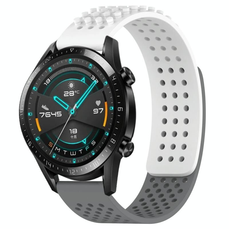 Για Huawei Watch GT2 42mm 20mm οπές αναπνεύσιμο 3D Dots σιλικόνης ρολόι μπάντα ρολογιού (λευκό + γκρι)