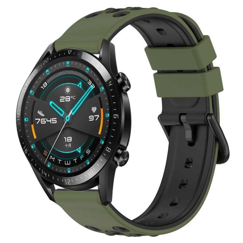 For Huawei Watch GT2 42mm 20mm Two-Color Porous Silicone Watch Band(Army Green + Black)