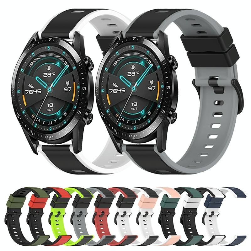 Για Huawei Watch GT2 42mm 20mm Δύο χρωμάτων σιλικόνης ρολόι μπάντα ρολογιού (Λευκό + Μαύρο)