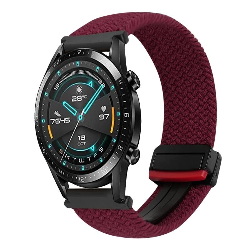 Για το Huawei Watch GT2 46mm 22mm Μαγνητική πόρπη Braided Watch Band (Μαύρη άμμος κόκκινο)