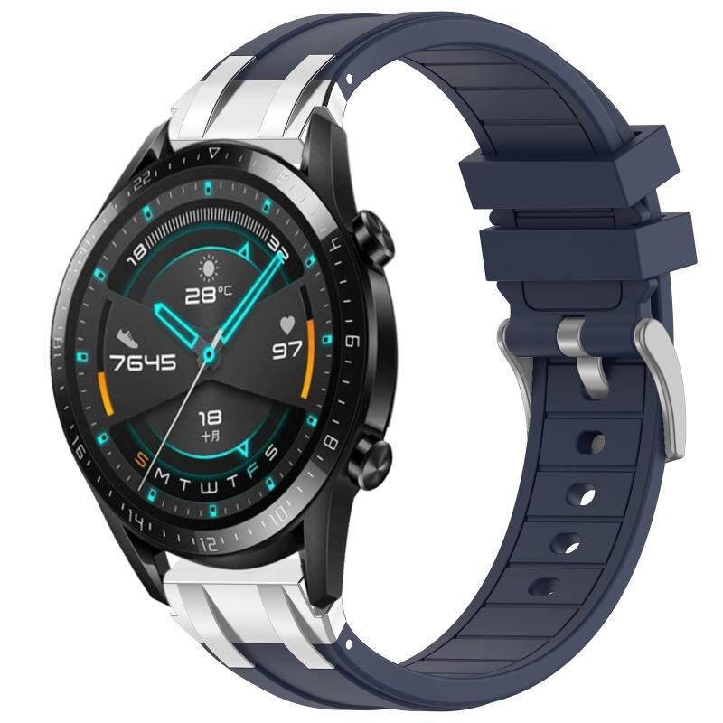For Huawei Watch GT2 46mm 22mm Quick Release Silver Buckle Royal Silicone Watch Band(Navy Blue)