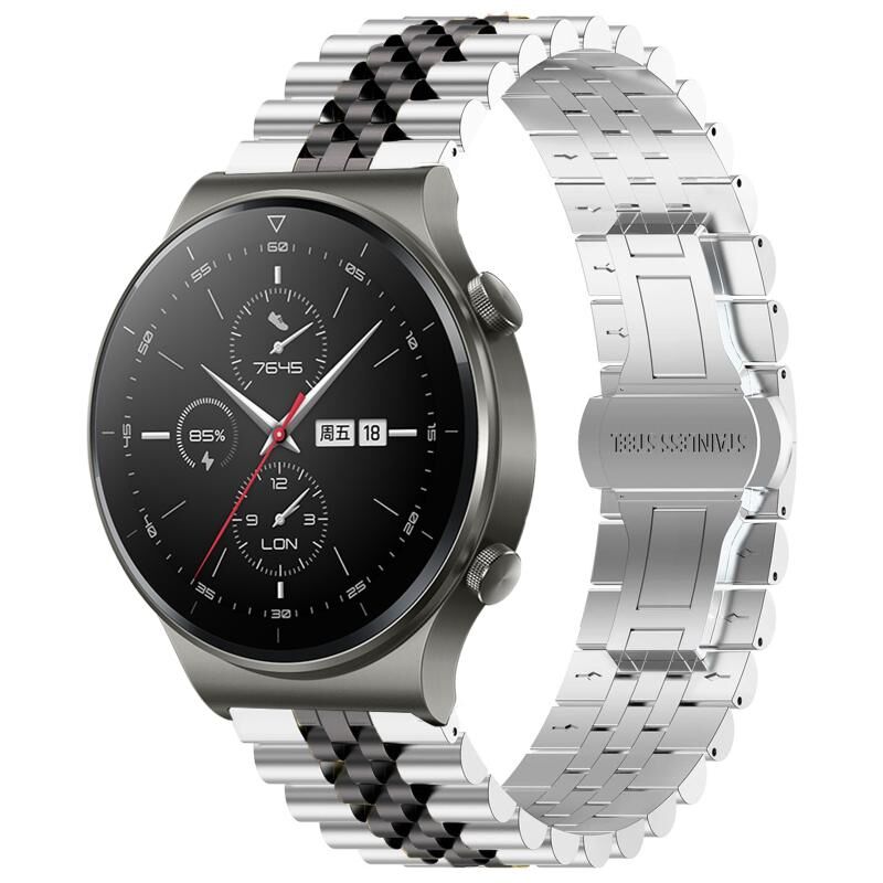 Για το Huawei Watch GT2 Pro / GT 2e Five Bull Half Round Stainless Steel Watch Band + Εργαλείο αφαίρεσης λουριού (Ασημί+Μαύρο)