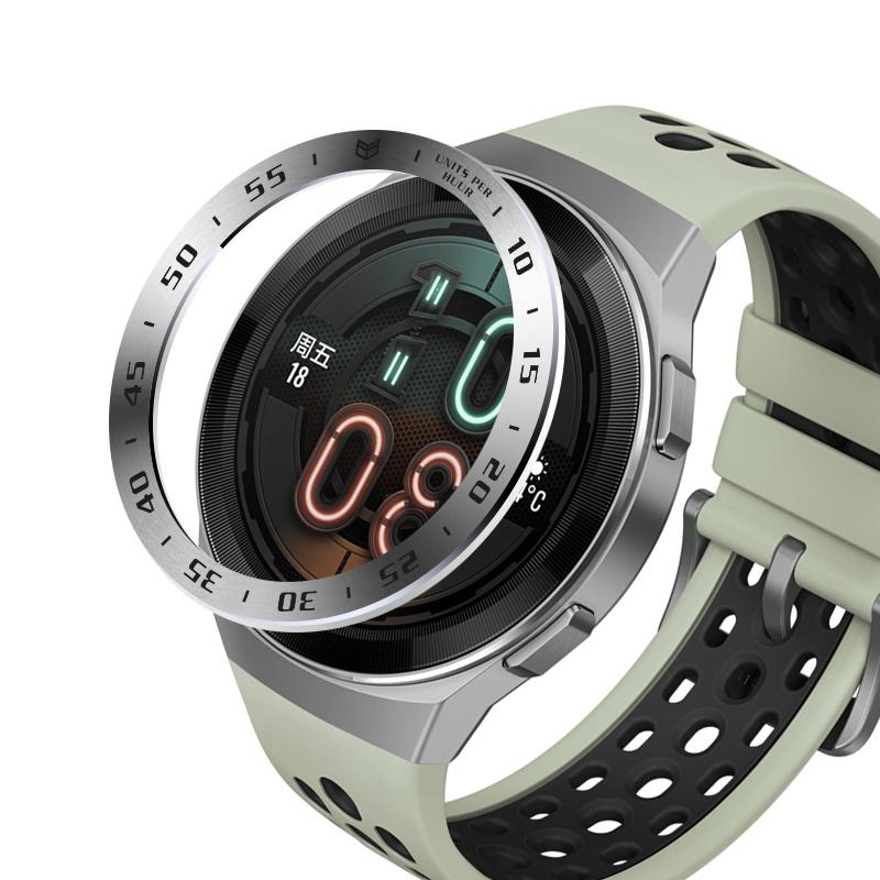 For Huawei Watch GT2e Smart Watch Stainless Steel Bezel Ring, Style:A Version Time(Silver Ring Black Lettering)