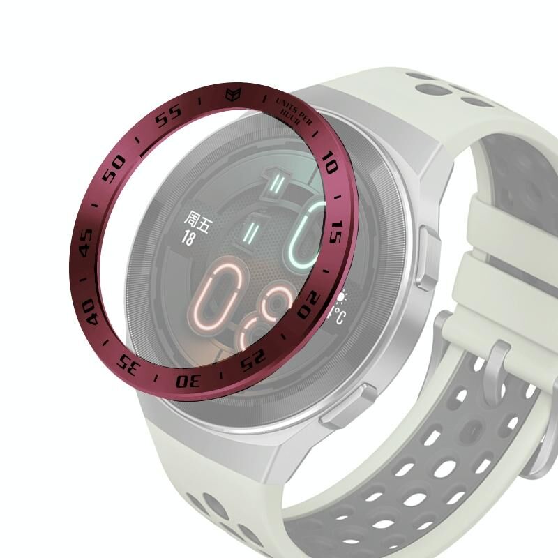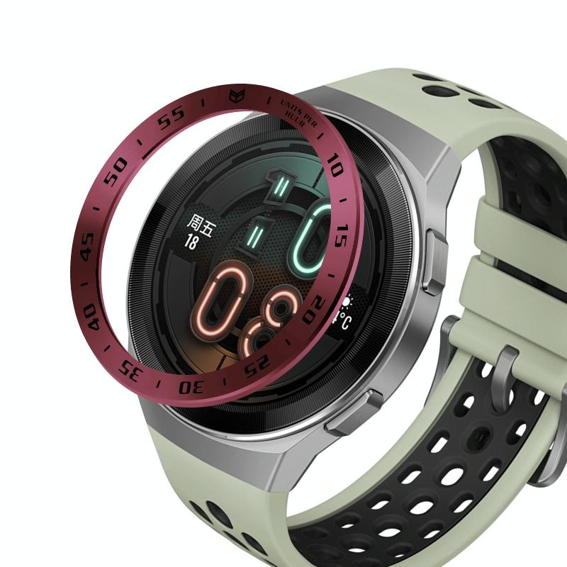 For Huawei Watch GT2e Smart Watch Stainless Steel Bezel Ring, Style:A Version Time(Wine Red Ring Black Lettering)