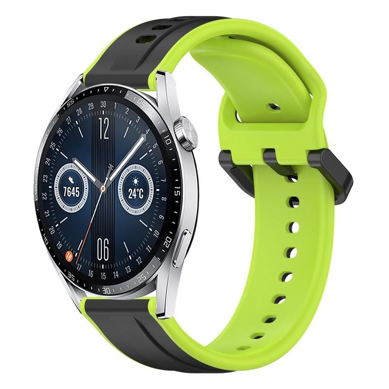 Για το Huawei Watch GT3 42mm 20mm Convex Loop Δύο-χρώμα σιλικόνης ρολόι μπάντα ρολογιών (Μαύρο + Lime)