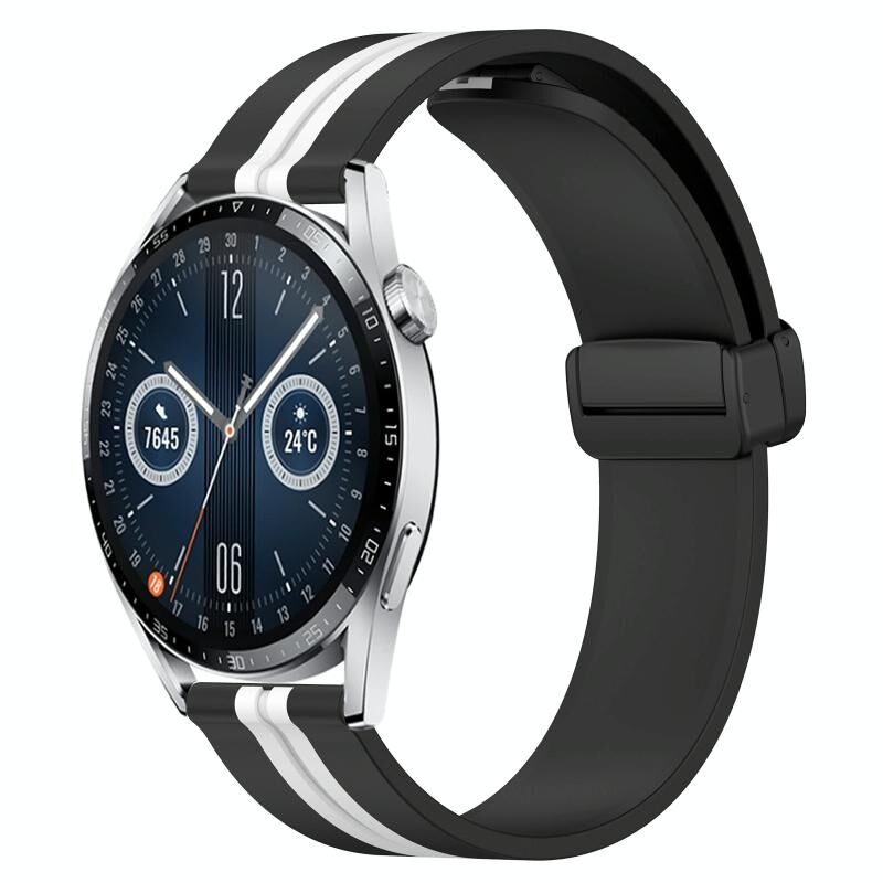Για Huawei Watch GT3 42mm 20mm Πτυσσόμενο μαγνητικό κούμπωμα ζώνη ρολογιού σιλικόνης (μαύρο + λευκό)
