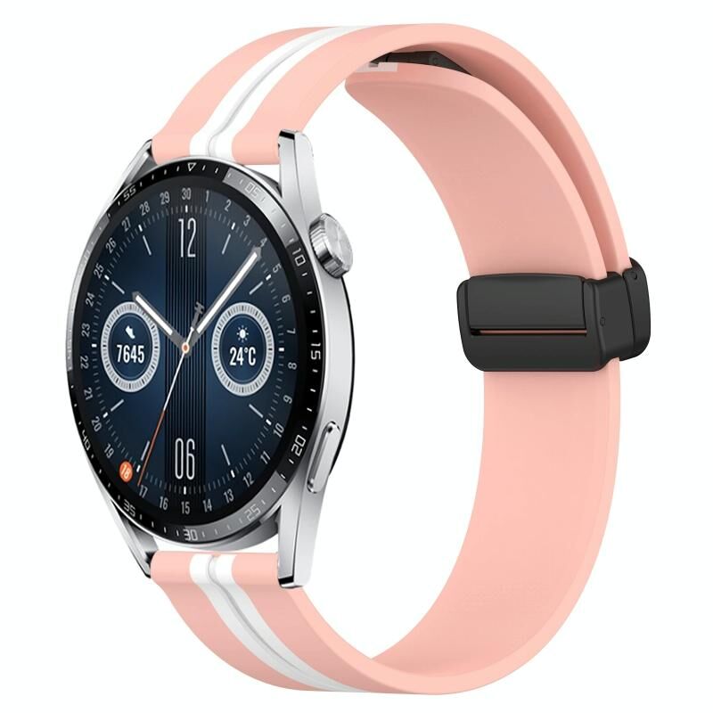 Για Huawei Watch GT3 42mm 20mm Πτυσσόμενο μαγνητικό κούμπωμα ζώνη ρολογιού σιλικόνης (ροζ + λευκό)