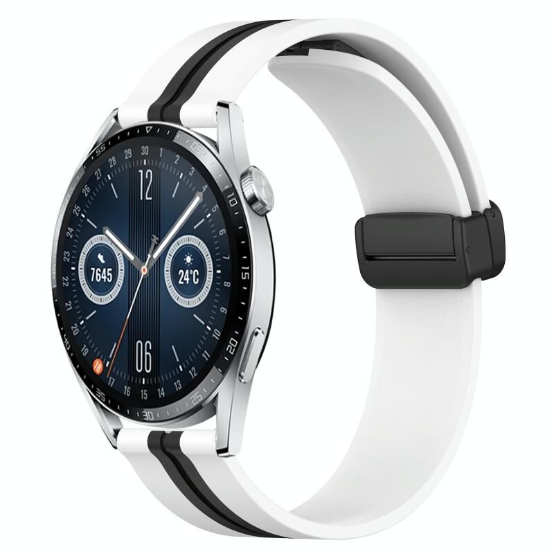 Για Huawei Watch GT3 42mm 20mm Πτυσσόμενο μαγνητικό κούμπωμα ζώνη ρολογιού σιλικόνης (λευκό + μαύρο)