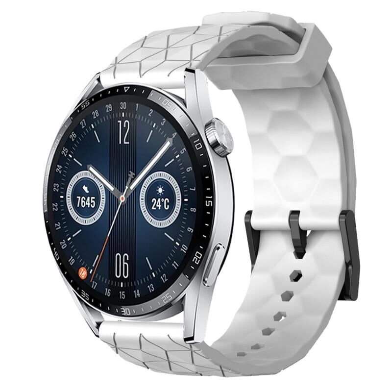 Για Huawei Watch GT3 42mm 20mm ποδοσφαιρικό μοτίβο στερεό χρώμα σιλικόνης ρολόι μπάντα ρολογιού (λευκό)