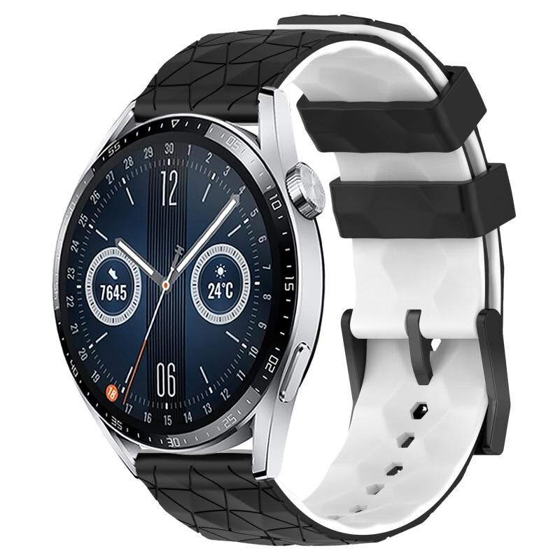 Για το Huawei Watch GT3 42mm 20mm ποδοσφαιρικό μοτίβο σιλικόνης δύο χρωμάτων (μαύρο + λευκό)