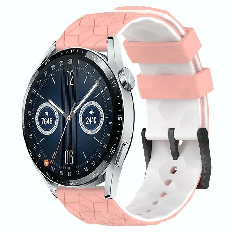 Για Huawei Watch GT3 42mm 20mm ποδοσφαιρικό μοτίβο δύο χρωμάτων σιλικόνης ρολόι μπάντα ρολογιού (ροζ + λευκό)