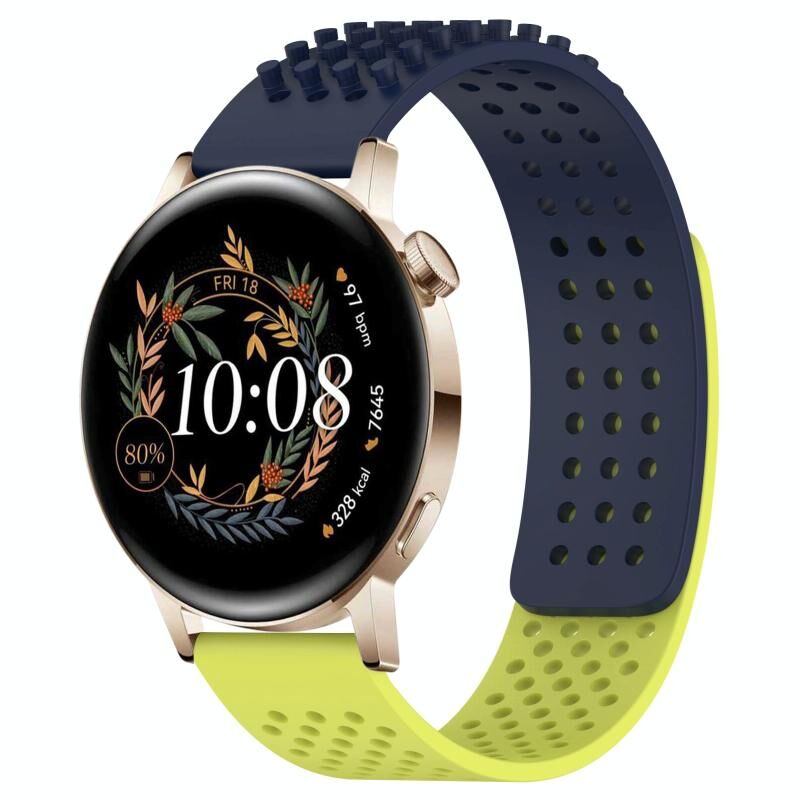 Για Huawei Watch GT3 42mm 20mm οπές αναπνεύσιμο 3D Dots σιλικόνης ρολόι μπάντα ρολογιών (Midnight Blue + πράσινο χρώμα)
