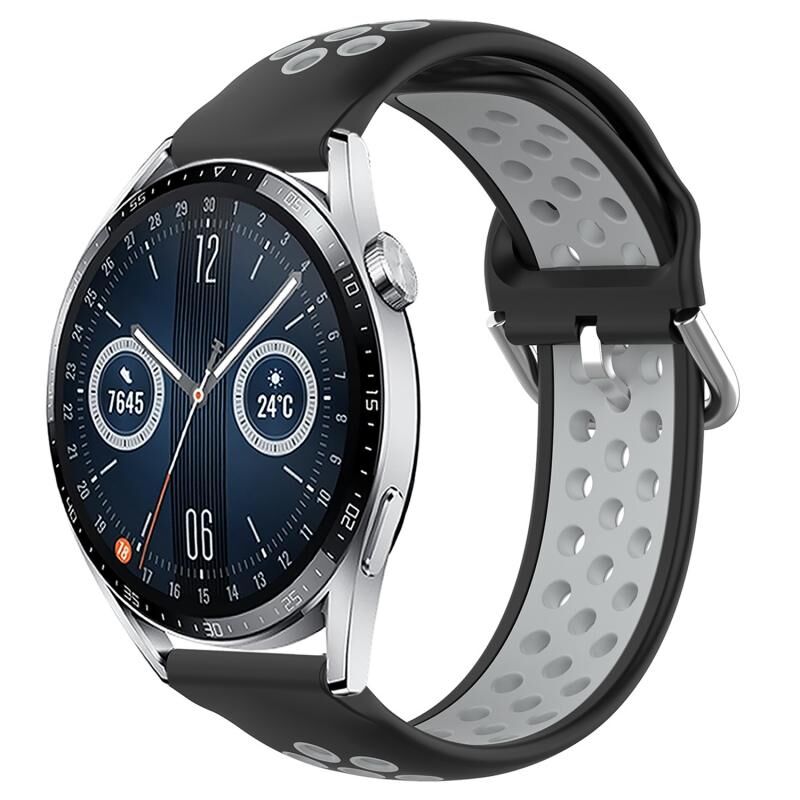 Για το Huawei Watch GT3 42mm 20mm διάτρητη αναπνεύσιμη αθλητική ζώνη ρολογιού σιλικόνης (μαύρο + γκρι)