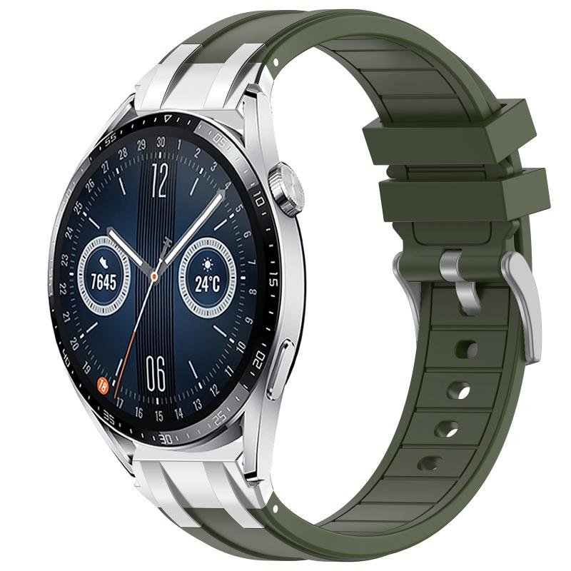 For Huawei Watch GT3 42mm 20mm Quick Release Silver Buckle Royal Silicone Watch Band(Olive Green)