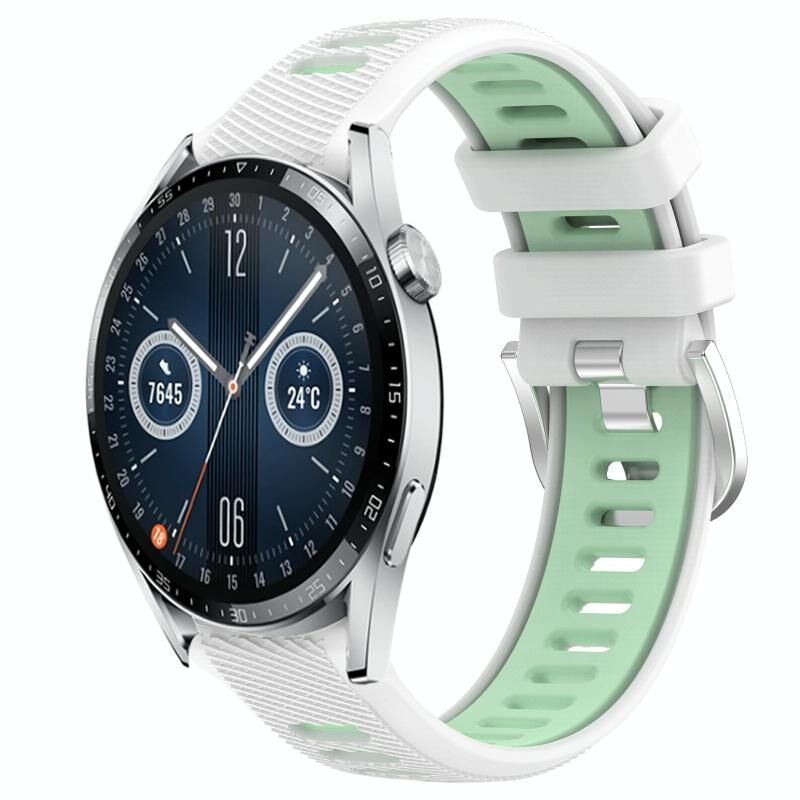 Για Huawei Watch GT3 42mm 20mm Αθλητισμός Δύο χρώματα χάλυβα πόρπη σιλικόνης ρολόι μπάντα ρολογιών (λευκό + Teal)