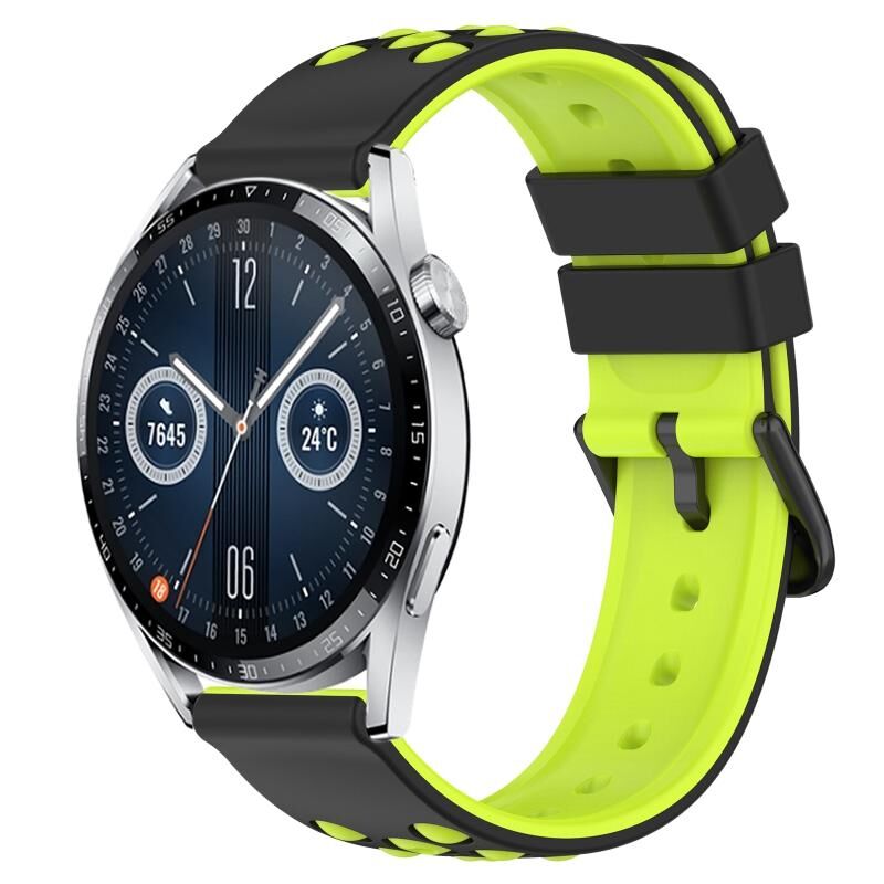 Για το Huawei Watch GT3 42mm 20mm Δύο χρωμάτων πορώδες λουράκι ρολογιού σιλικόνης (Μαύρο + πράσινο χρώμα)