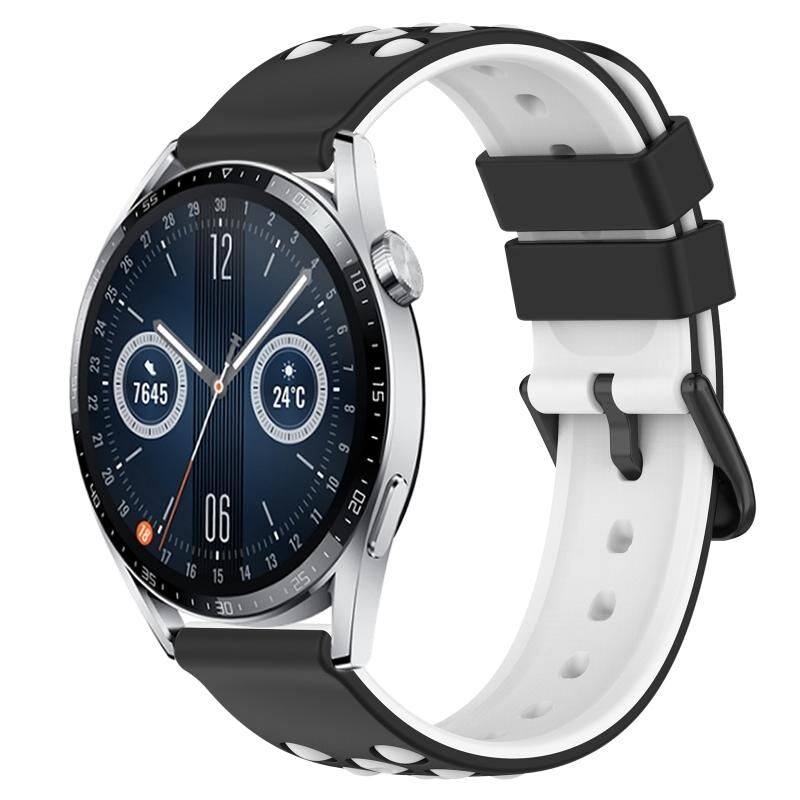 Για το Huawei Watch GT3 42mm 20mm Δύο-χρώμα πορώδες λουράκι σιλικόνης ρολόι (μαύρο+λευκό)