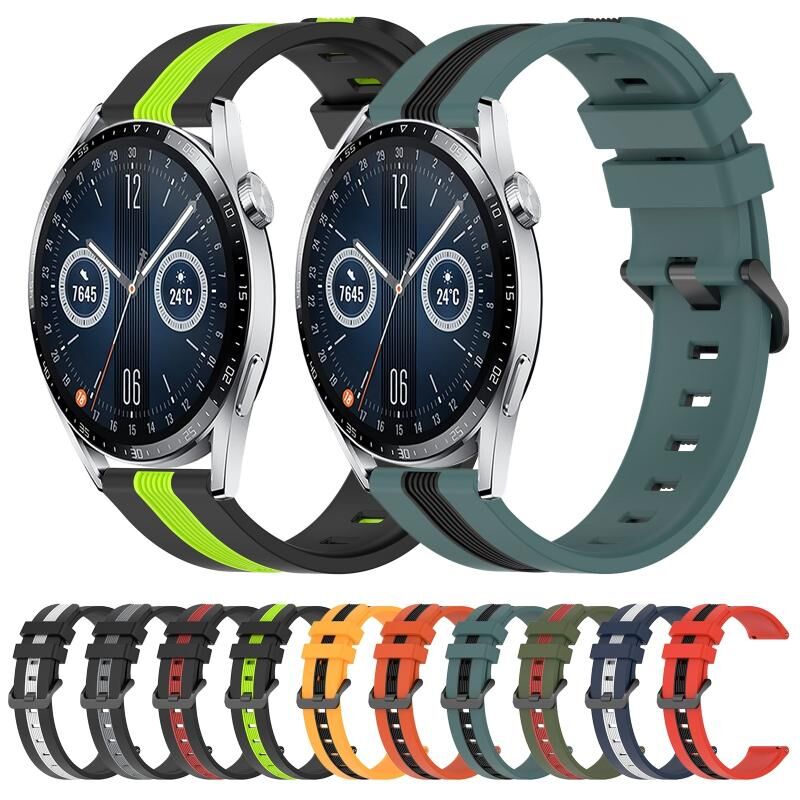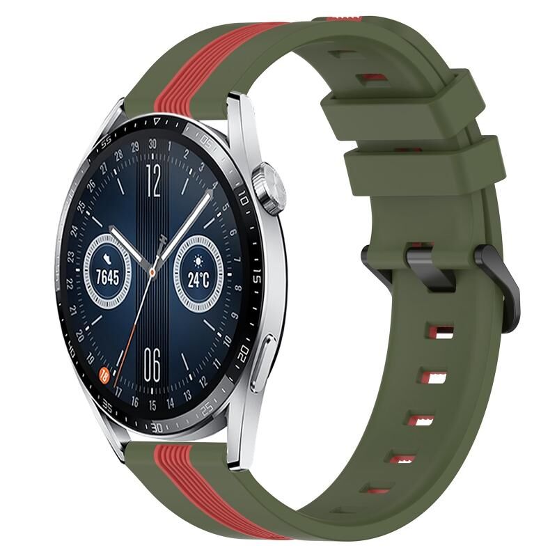 Για Huawei Watch GT3 42mm 20mm Κάθετη ζώνη ρολογιού σιλικόνης δύο χρωμάτων (πράσινο στρατού + κόκκινο)
