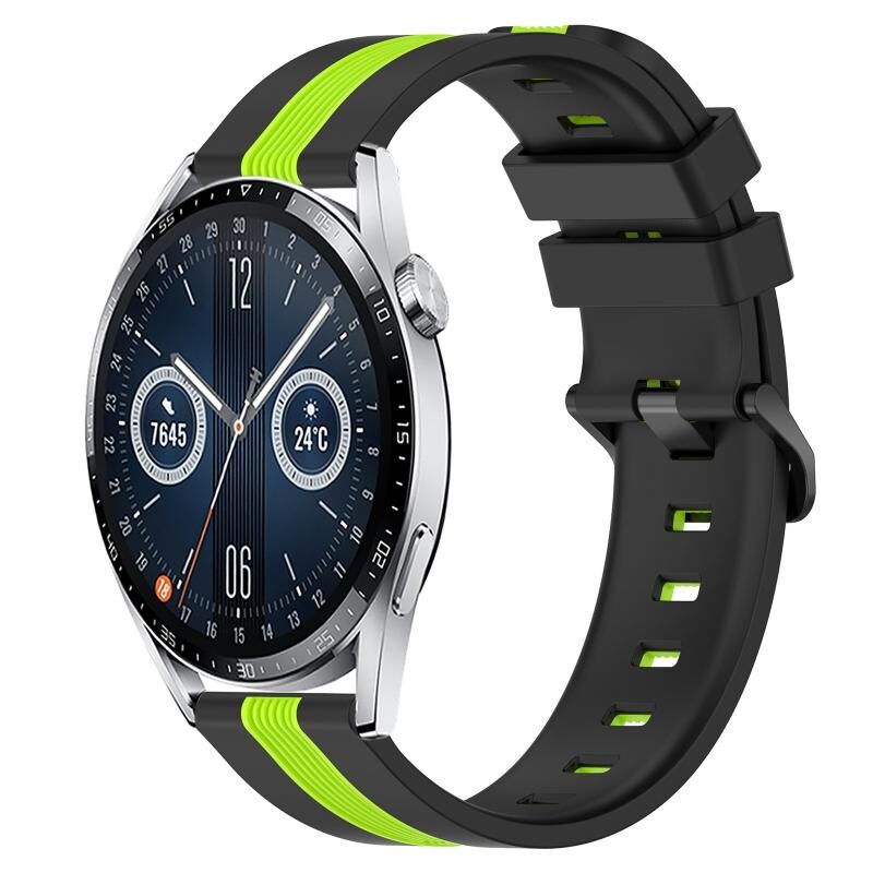 Για Huawei Watch GT3 42mm 20mm Κάθετη ζώνη ρολογιού σιλικόνης δύο χρωμάτων (μαύρο + πράσινο χρώμα)