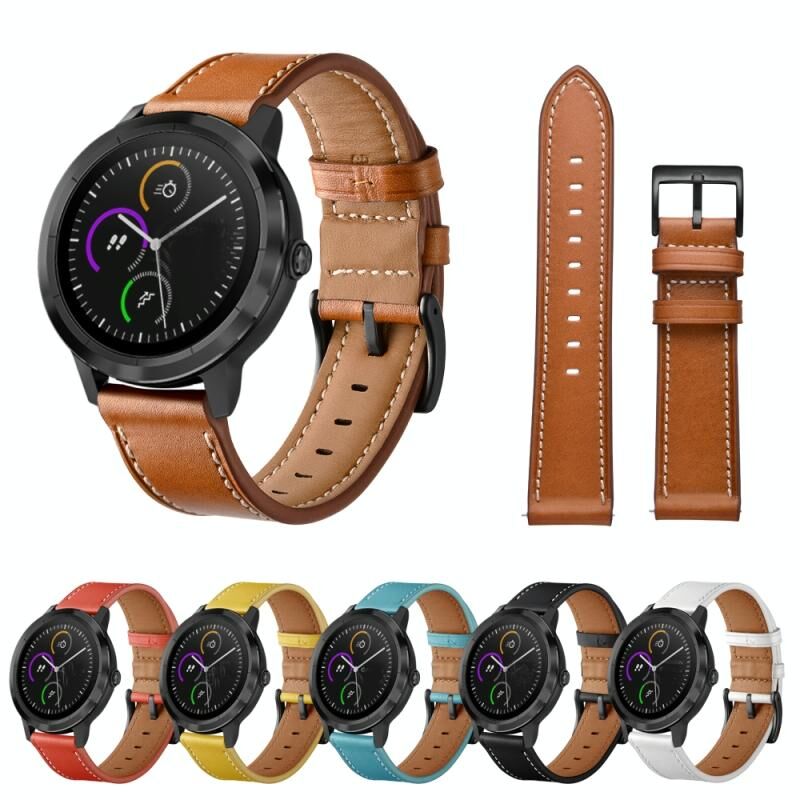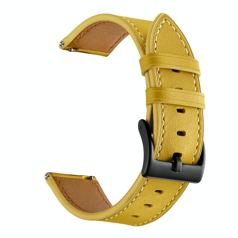 For Huawei Watch GT3 42mm / Watch GT2 42mm First Layer Leather Sewing Thread Watch Band (Yellow)