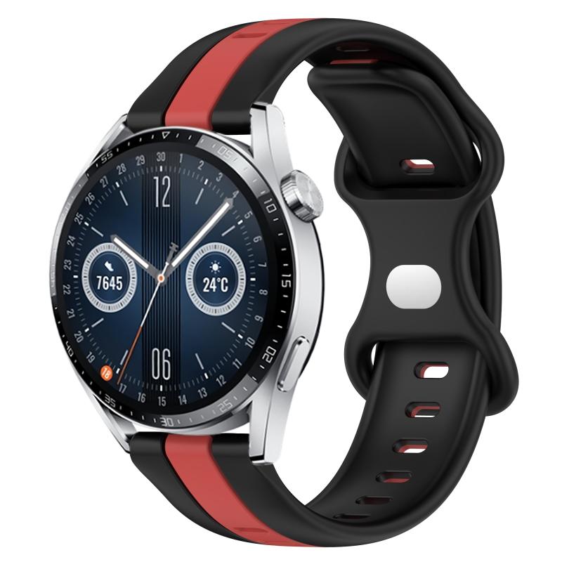 For Huawei Watch GT3 46mm 20mm Butterfly Buckle Two-Color Silicone Watch Band(Black+Red)