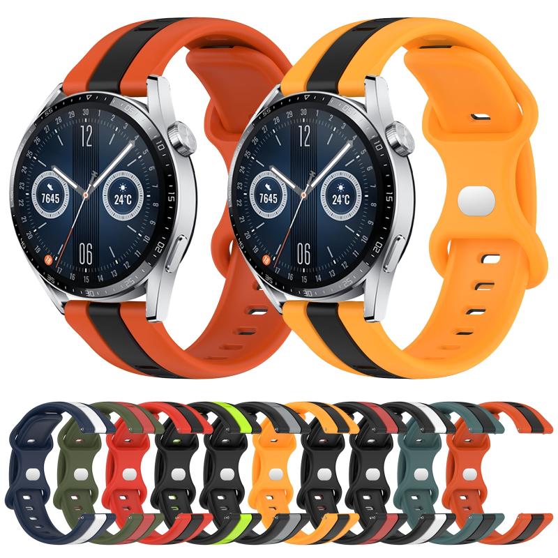 For Huawei Watch GT3 46mm 20mm Butterfly Buckle Two-Color Silicone Watch Band(Green+Black)