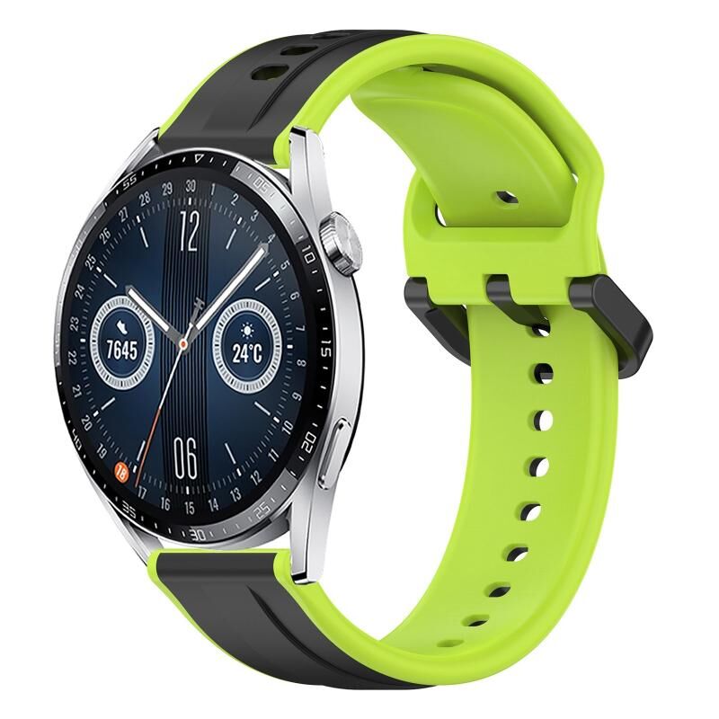 Για το Huawei Watch GT3 46mm 22mm κυρτό βρόχο σιλικόνης δύο χρωμάτων (Μαύρο+Lime)