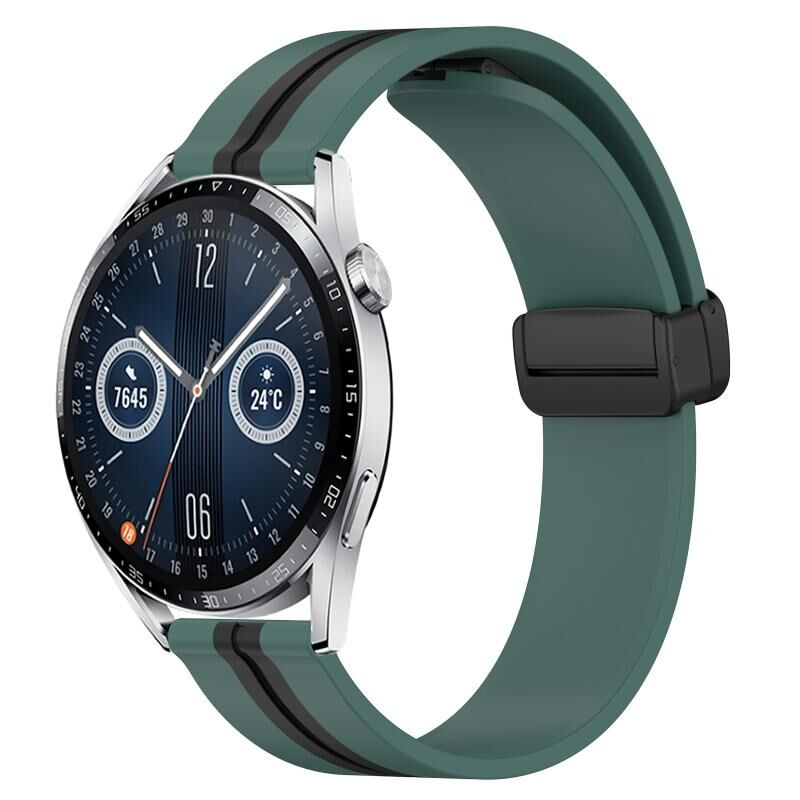 Για το Huawei Watch GT3 46mm 22mm Πτυσσόμενο μαγνητικό κούμπωμα ζώνη ρολογιού σιλικόνης (Olive Green + Black)