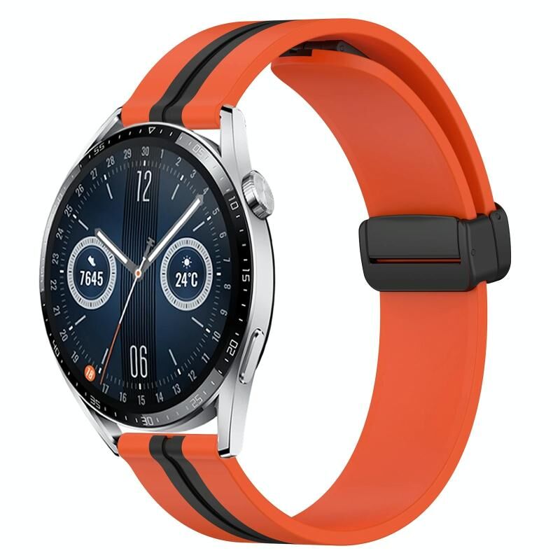 Για Huawei Watch GT3 46mm 22mm Πτυσσόμενο μαγνητικό κούμπωμα ζώνη ρολογιού σιλικόνης (πορτοκαλί + μαύρο)