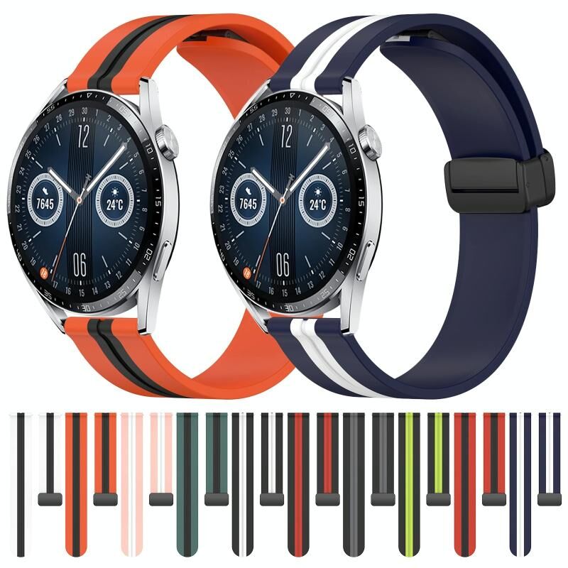Για Huawei Watch GT3 46mm 22mm Πτυσσόμενο μαγνητικό κούμπωμα ζώνη ρολογιού σιλικόνης (ροζ + λευκό)