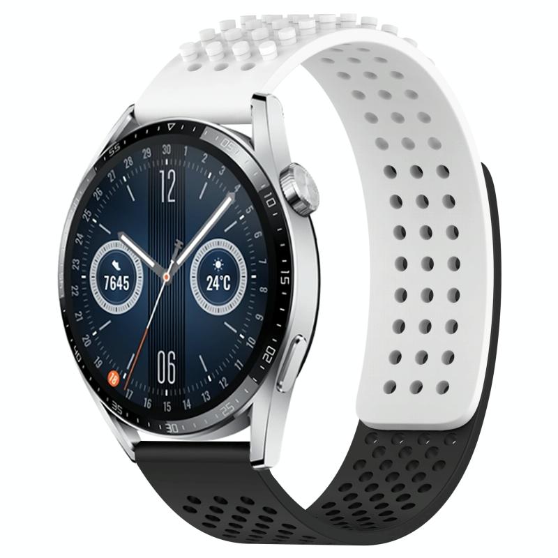 For Huawei Watch GT3 46mm 22mm Holes Breathable 3D Dots Silicone Watch Band(White+Black)
