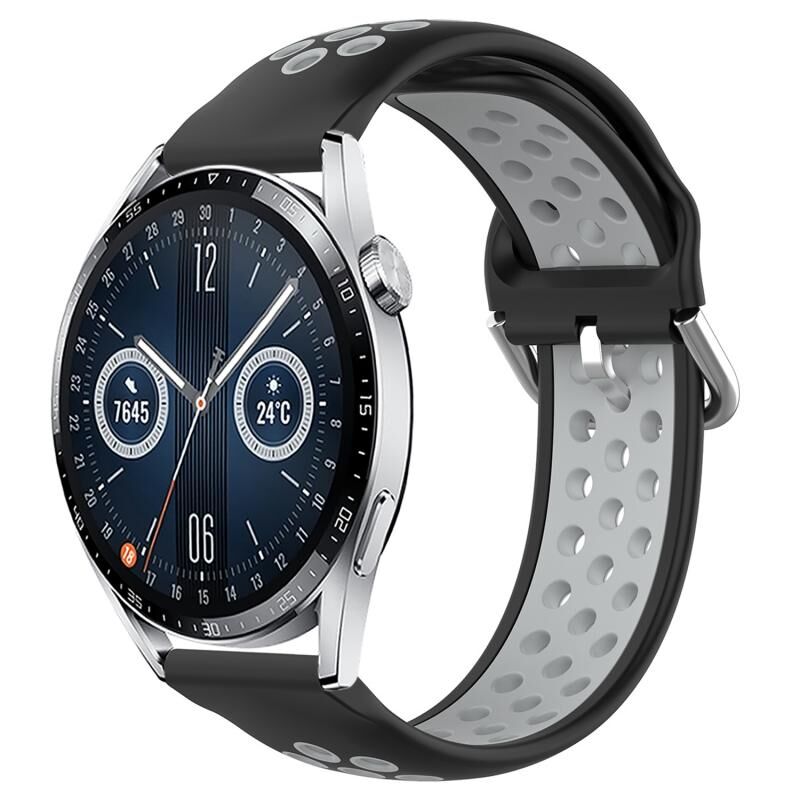 Για το Huawei Watch GT3 46mm 22mm Διάτρητη αναπνεύσιμη αθλητική ζώνη ρολογιού σιλικόνης (μαύρο + γκρι)