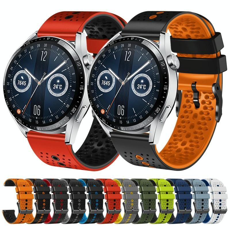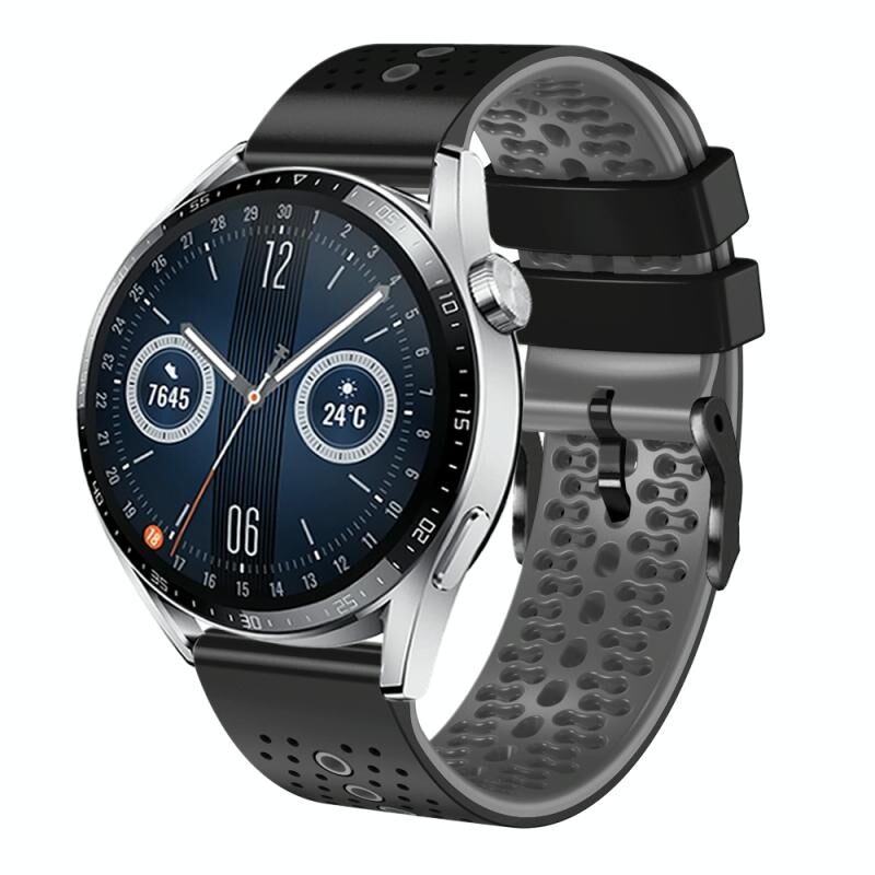 Για το Huawei Watch GT3 46mm 22mm Διάτρητη ζώνη ρολογιού σιλικόνης δύο χρωμάτων (μαύρο + γκρι)