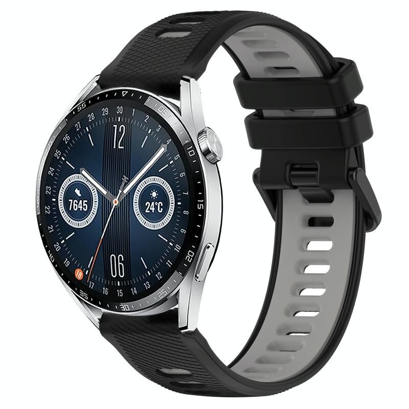 Για το Huawei Watch GT3 46mm 22mm Αθλητική ζώνη ρολογιού σιλικόνης δύο χρωμάτων (μαύρο + γκρι)