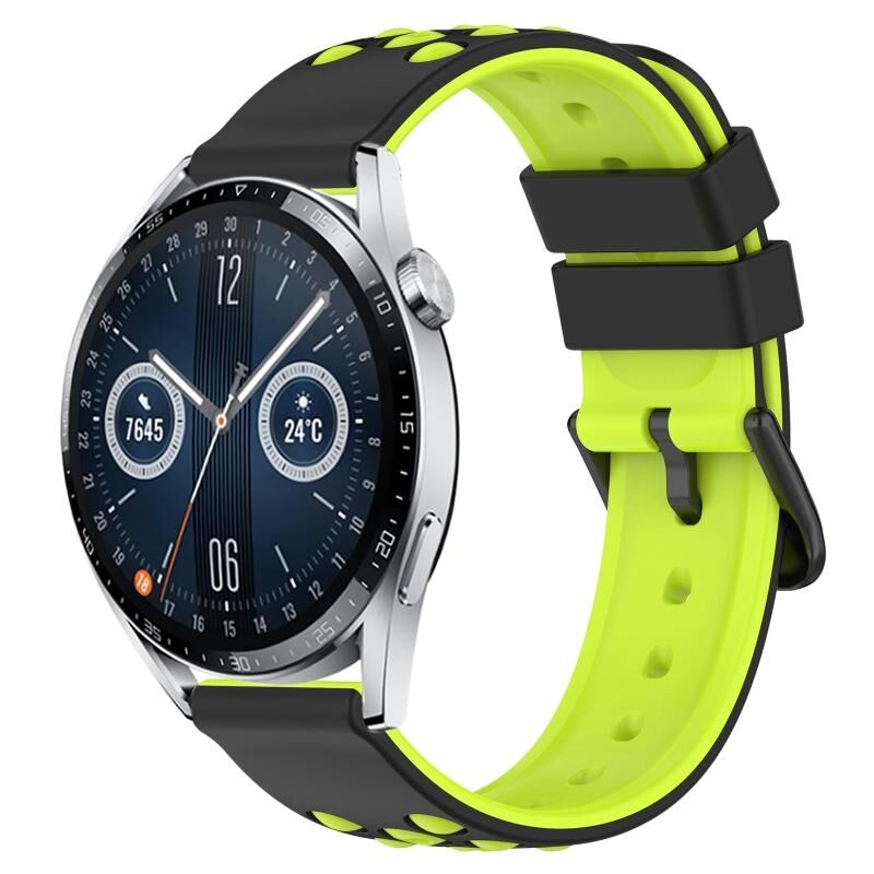 Για το Huawei Watch GT3 46mm 22mm Δύο χρωμάτων πορώδη ζώνη ρολογιού σιλικόνης (μαύρο + πράσινο χρώμα)
