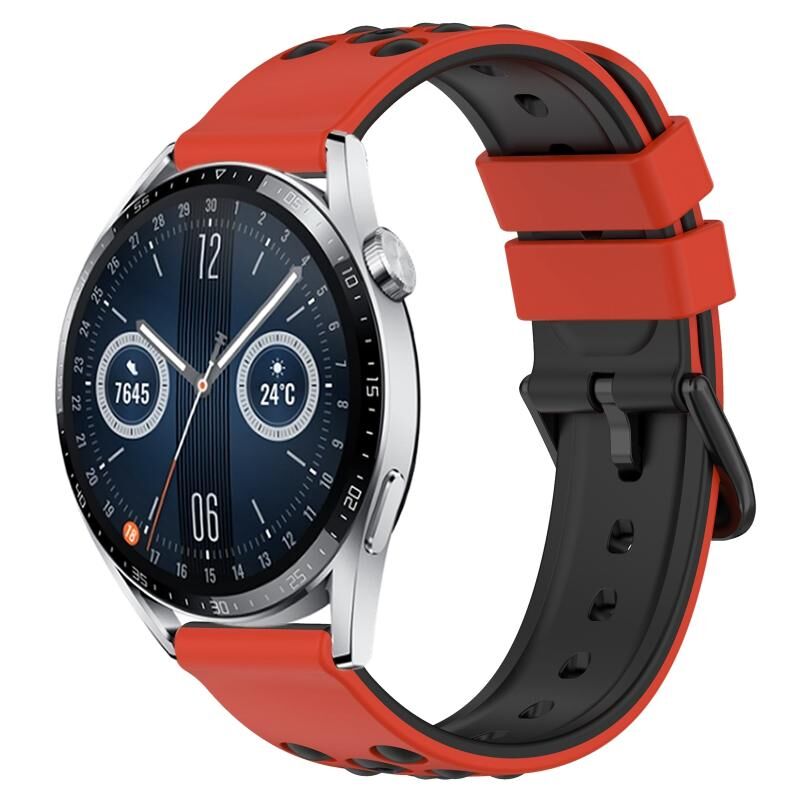 Για το Huawei Watch GT3 46mm 22mm Δύο χρωμάτων πορώδες λουράκι ρολογιού σιλικόνης (κόκκινο+μαύρο)