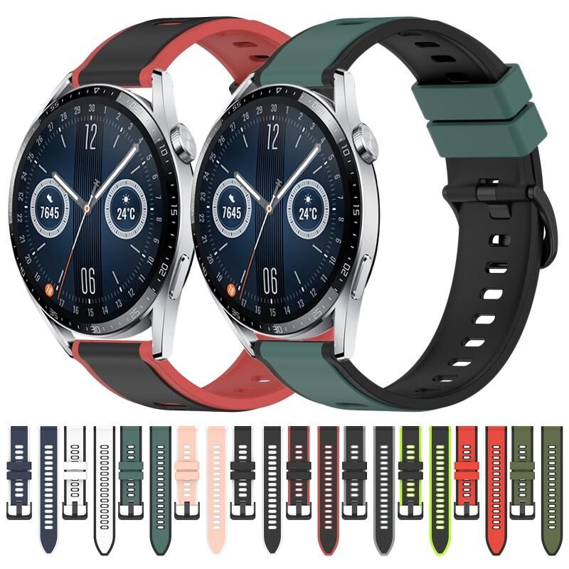 Για Huawei Watch GT3 46mm 22mm Δύο χρωμάτων σιλικόνης ρολόι μπάντα ρολογιού (πράσινο ελιάς + μαύρο)