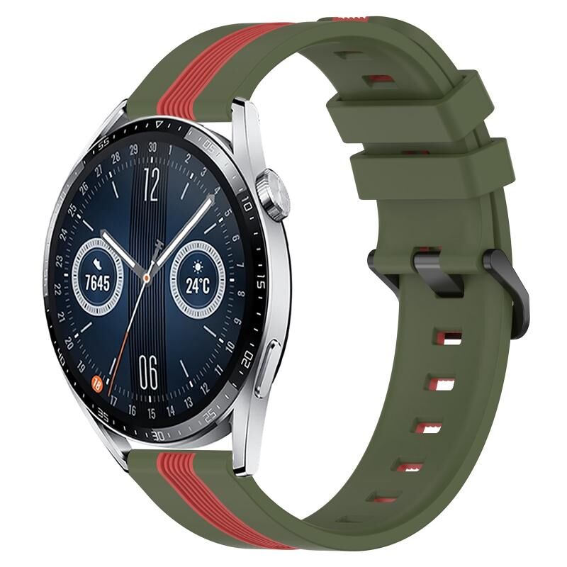 Για Huawei Watch GT3 46mm 22mm Κάθετη ζώνη ρολογιού σιλικόνης δύο χρωμάτων (πράσινο στρατού + κόκκινο)