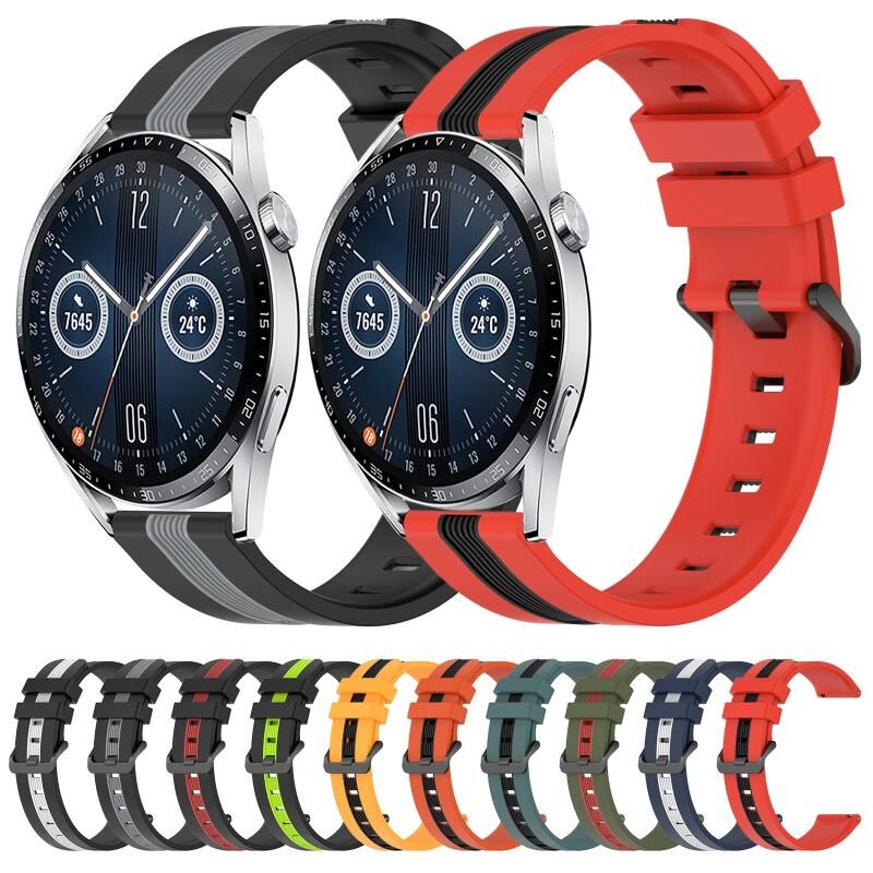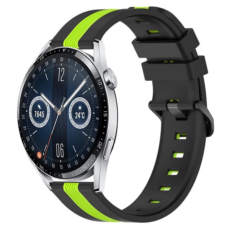 Για Huawei Watch GT3 46mm 22mm Κάθετη ζώνη ρολογιού σιλικόνης δύο χρωμάτων (μαύρο + πράσινο χρώμα)